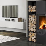 L'ESQUINA N est disponible uniquement en finition acier noir et peut recevoir également des caissons bûcher, de rangement.
