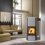 Avec ses dimensions de 135 (h) x 64,5 (l) x 54,5 (p) cm et un poids total de 387 kg, l’appareil atteint une domaine de puissance de 3,3 – 6,5 kW en (mode) combustion à bois et de 7,5 / 11 kW en (mode) combustion à pellets.