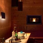 Cheminée à pellets au format panoramique pouvant être combinée aux systèmes de canalisation de l’air pour chauffer plusieurs espaces même s’ils ne communiquent pas entre eux.