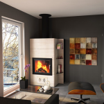 Ce poêle-cheminée existe de face et d’angle adossé en